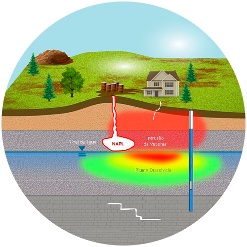A presença de fase vapor é proveniente da contaminação do solo e água subterrânea, a partir de compostos voláteis, os quais podem migrar para espaços fechados.